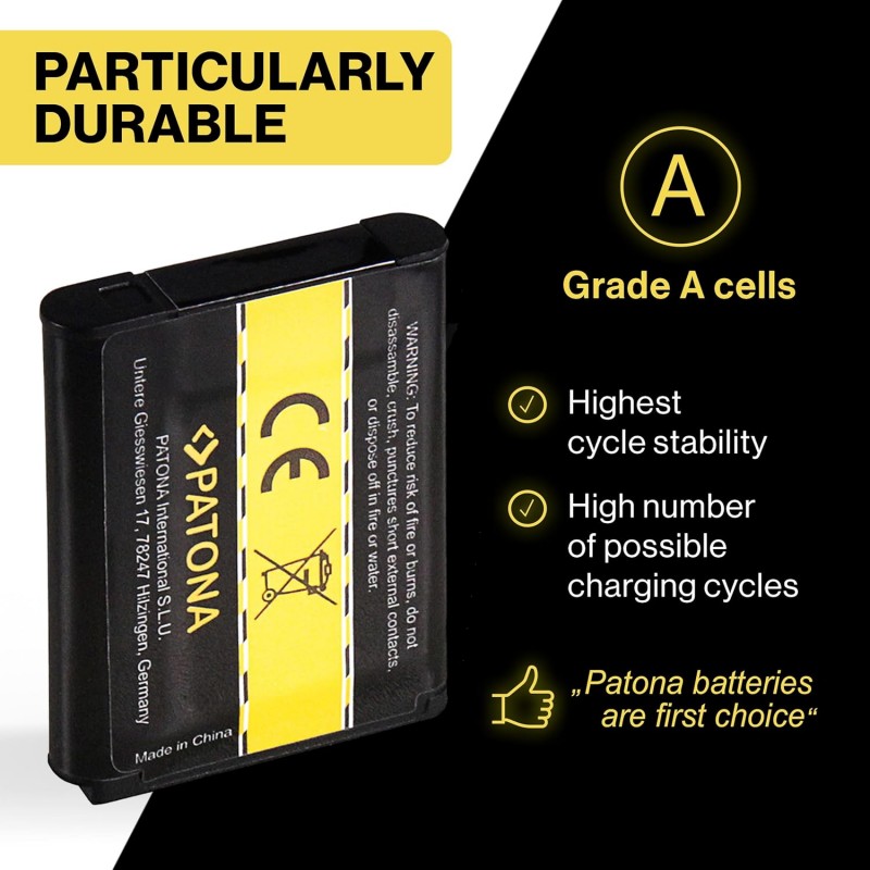 Com 600 mAh de capacidade e 3,7 volts, esta bateria assegura energia fiável para sessões fotográficas e gravações de vídeo prolongadas.
