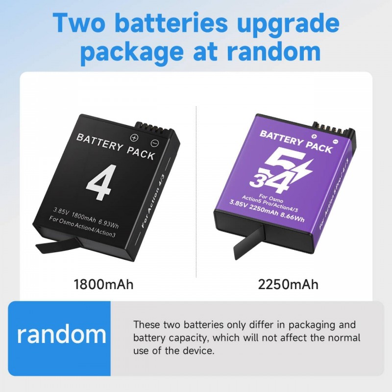 As duas versões de bateria (1800 mAh e 2250 mAh) apenas diferem na capacidade e embalagem. Ambas funcionam corretamente nos mesmos modelos de câmara.