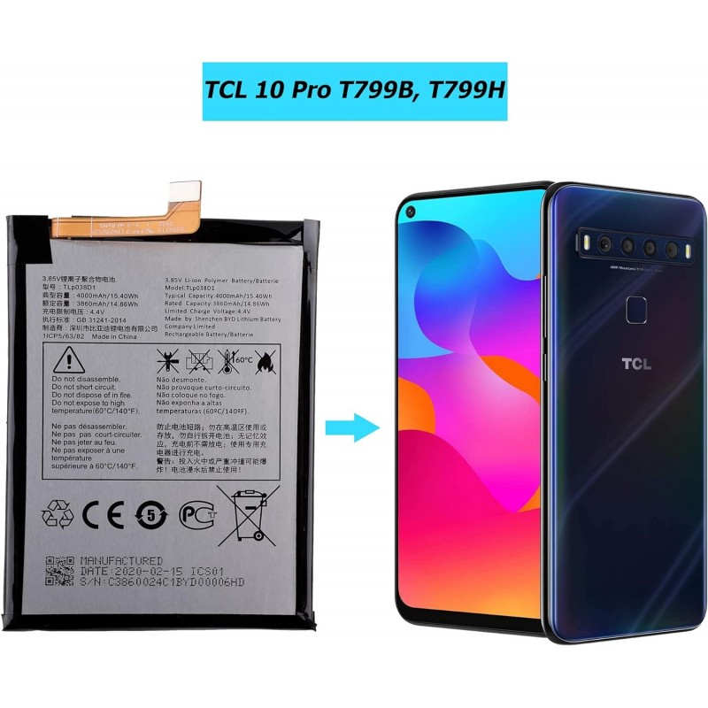 Apresentamos a bateria de substituição TLp038D1 da Vvsialeek, perfeitamente compatível com os modelos TCL 10L T770H T770B e TCL 10 Lite.