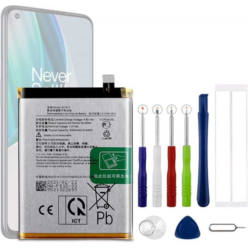 Bateria de Substituição BLP815 para OnePlus Nord N10 5G - Inclui Kit de Ferramentas de Reparação