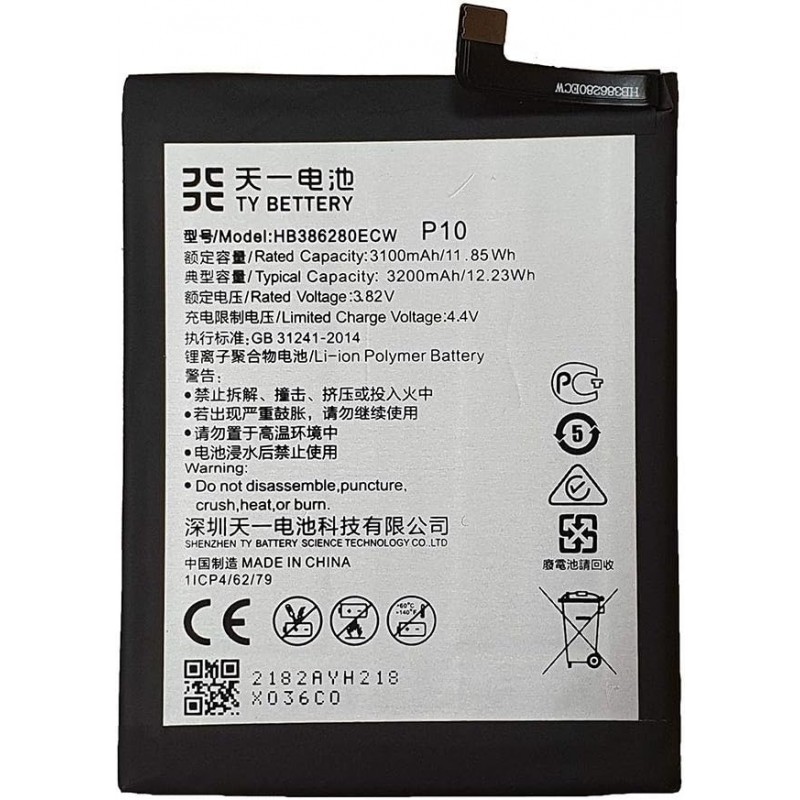 Bateria de substituição de alta capacidade para Huawei P10/Honor 9 compatível com HB386280ECW, oferecendo excelente desempenho e durabilidade com composição de células de íon de lítio. Ideal para substituir baterias desgastadas e prolongar a vida útil do seu telefone.