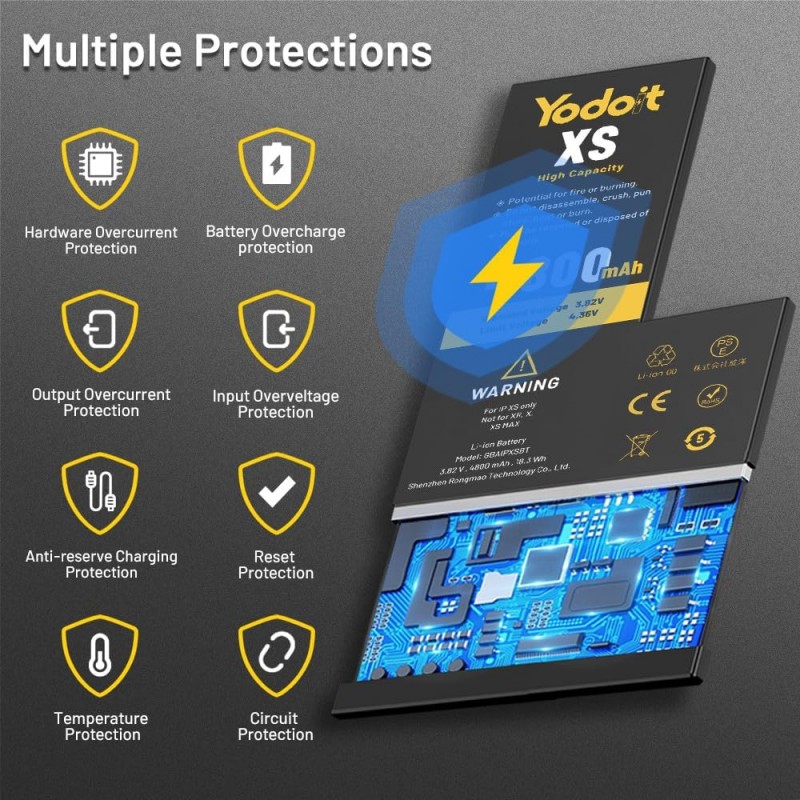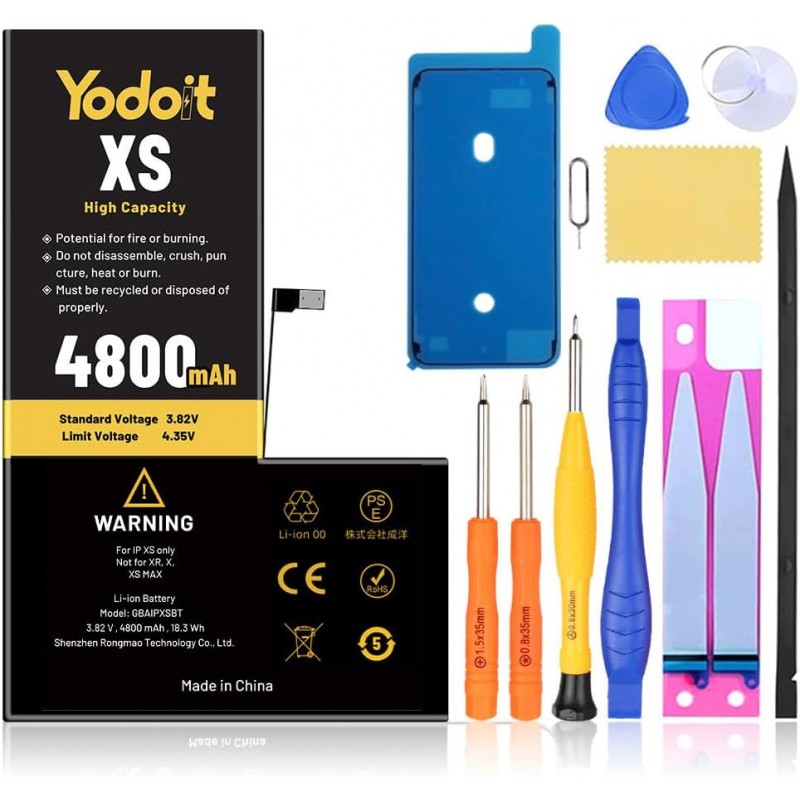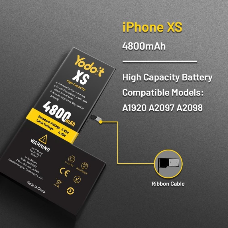 Bateria de substituição Yodoit de alta capacidade para iPhone XS, modelo atualizado com 4800mAh, oferecendo 80% mais capacidade do que a bateria original (2658mAh).