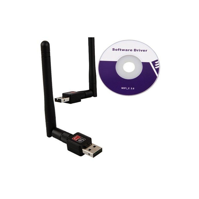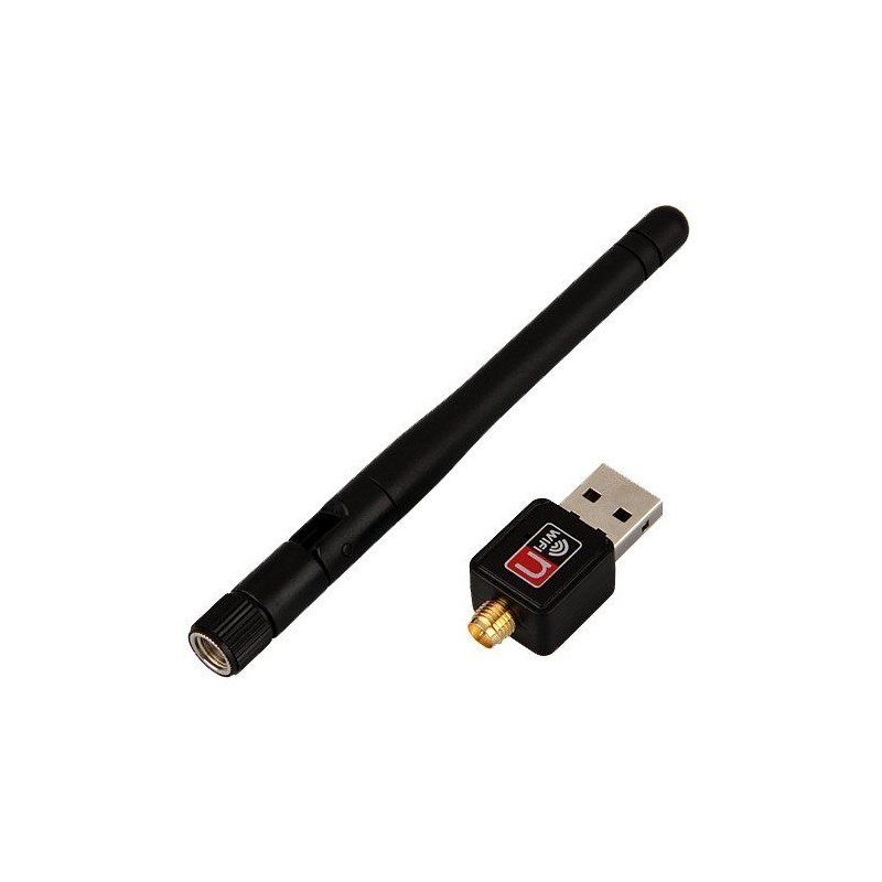 Adaptador WiFi USB 150 Mbps com antena desmontável, compatível com Windows, MacOS e Linux. Ideal para melhorar a receção WiFi em computadores e portáteis, uso em redes próprias.