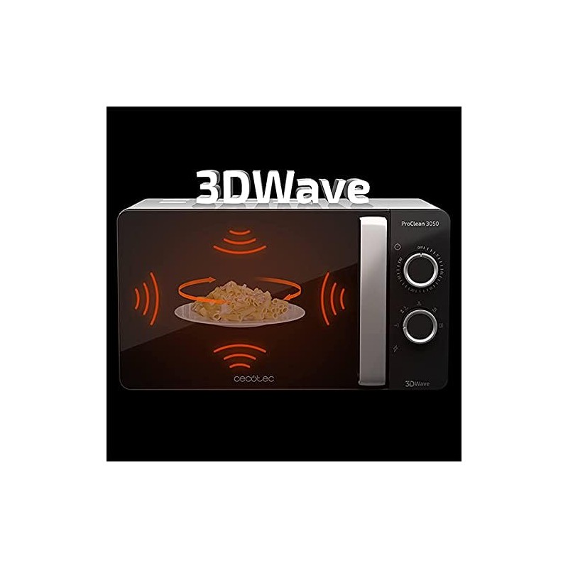 A tecnologia 3DWave do Cecotec garante um sistema de ondas eficiente que envolve completamente os alimentos, proporcionando um cozimento uniforme e rápido.