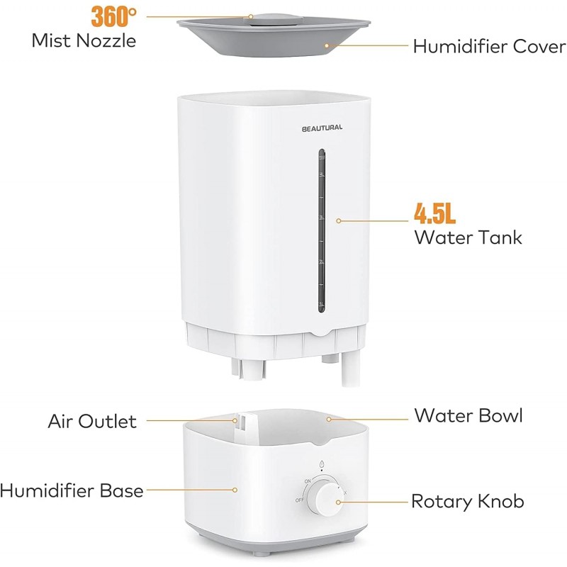 Humidificador Ultrassónico BEAUTURAL 4,5L: Conforto e Saúde para o Seu Espaço
