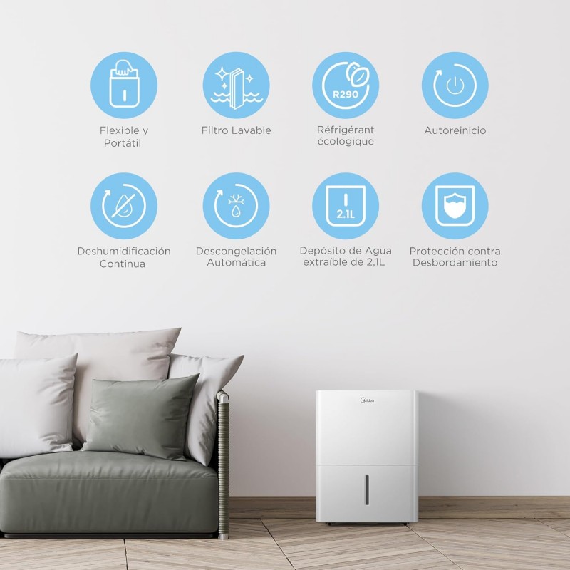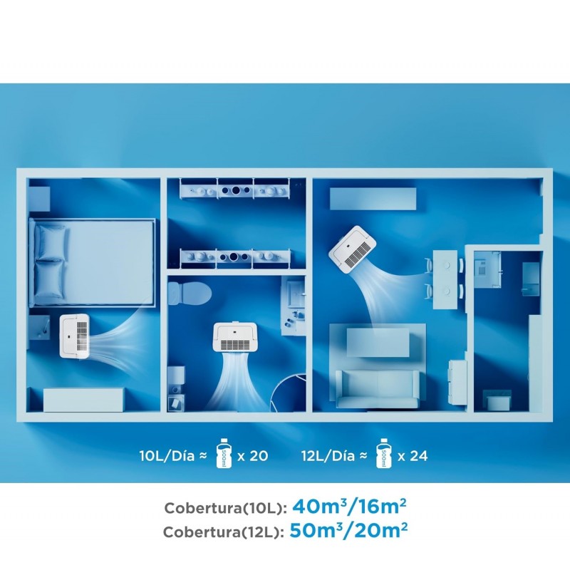 Projetado para regular eficientemente a humidade em áreas de até 20m², é a escolha ideal para casas de banho, porões, lavandarias, cozinhas e quartos.