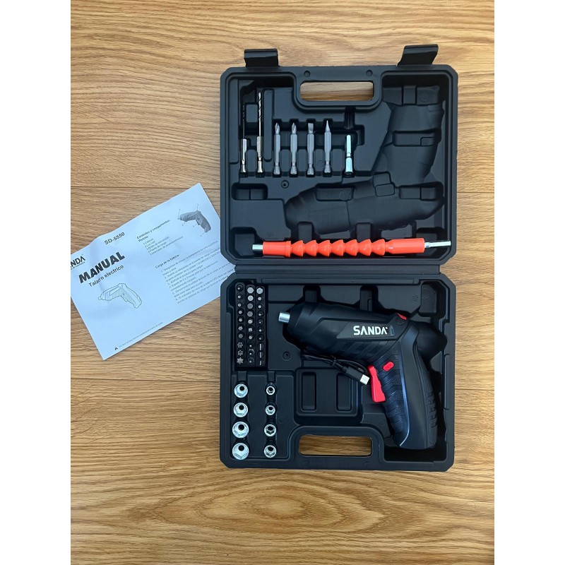O kit de berbequim/parafusador eléctrico Sanda SD-5550 é a ferramenta ideal para todos os que procuram uma solução prática, portátil e eficiente para pequenos trabalhos de bricolage, montagem e reparações em casa ou no trabalho.