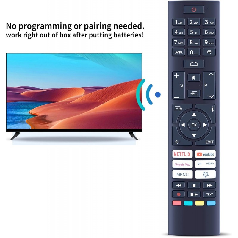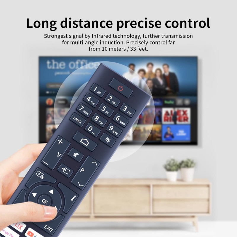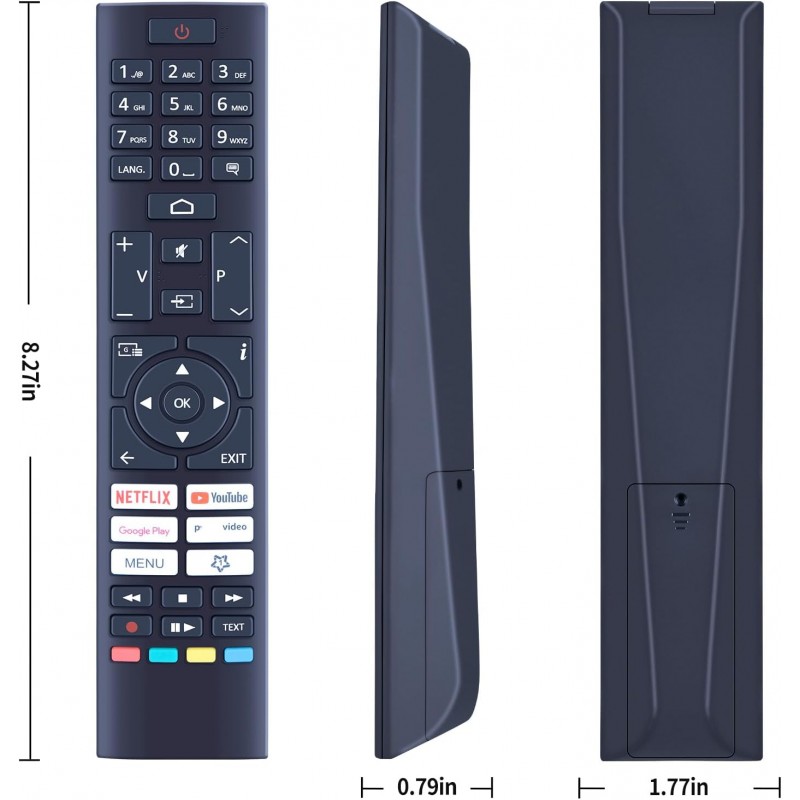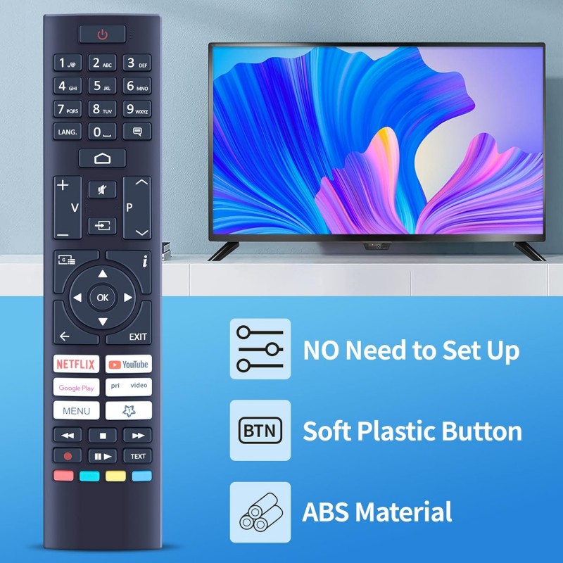 Controlo remoto de substituição compatível com televisões CECOTEC LED. Funcionamento por infravermelhos, sem necessidade de programação. Pronto a usar.