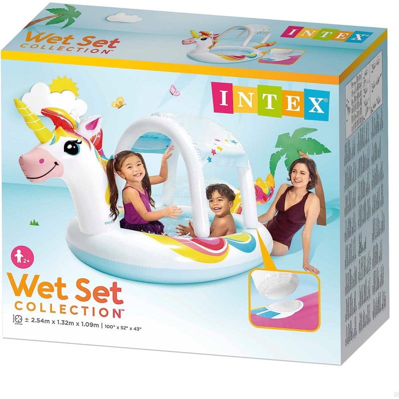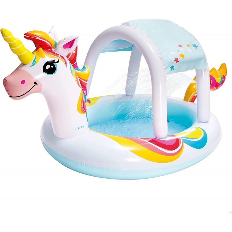 Piscina Insuflável Unicórnio INTEX com Guarda-sol Desmontável e Pulverizador de Água