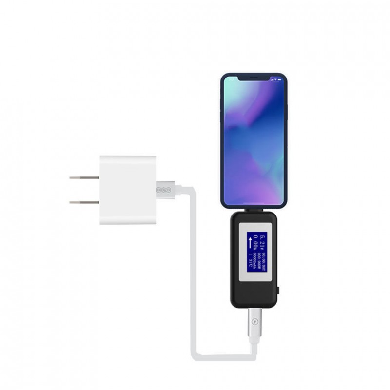 Pode medir através de porta Type-C (PC, smartphone, carregador carro, Powerbank, etc.) e apresentar a corrente, a voltagem de output, a capacidade de carga e descarga.