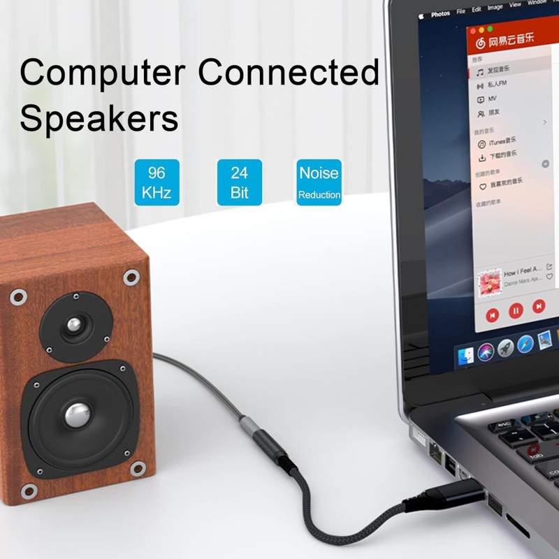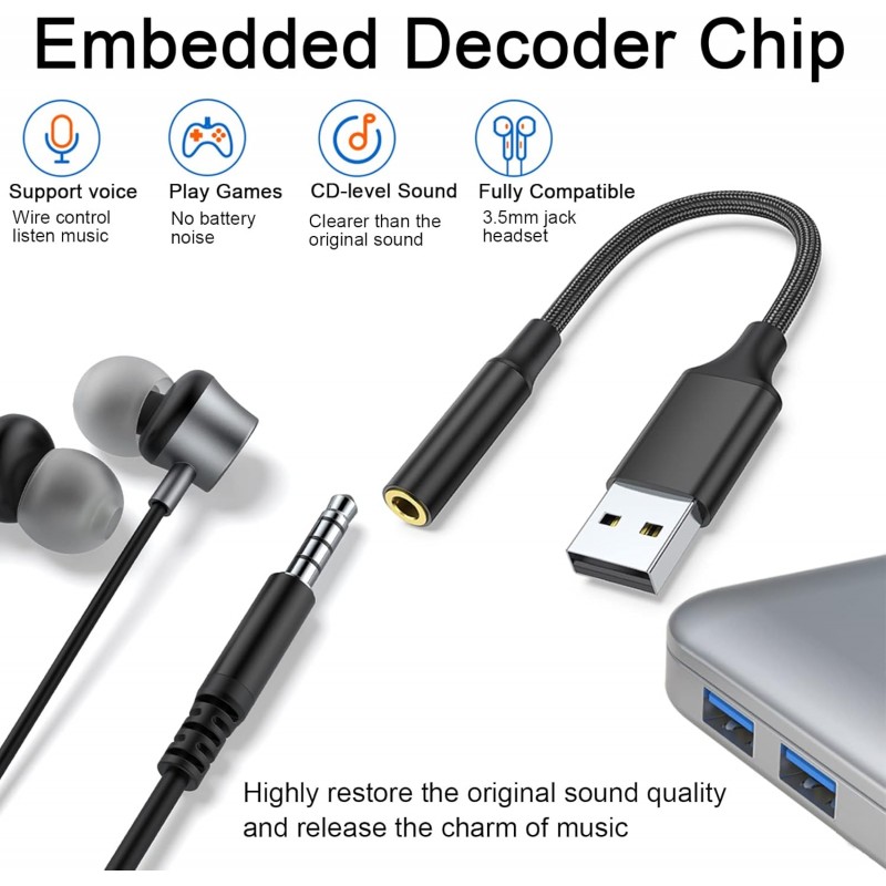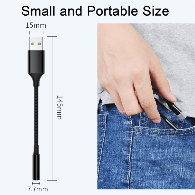 O adaptador de áudio USB para Jack 3,5mm da marca Olakin oferece uma experiência de som Hi-Fi com tecnologia de decodificação e amplificação de som, proporcionando uma qualidade de áudio estéreo clara e rica. É um dispositivo leve e compacto, construído em alumínio durável e com cabo entrançado reforçado.