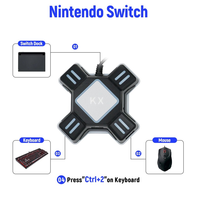 Kx adapter é um produto inovador que permite aos jogadores desfrutarem de jogos fps em diferentes dispositivos com teclado usb e rato.