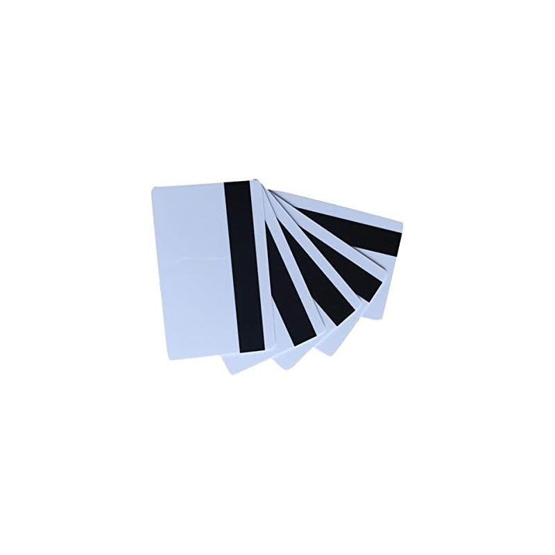 Pacote de 10 cartões magnéticos em PVC branco, com banda magnética e tamanho padrão de cartão de crédito. Ideais para impressão e personalização, com um design liso e versátil para diversas finalidades.