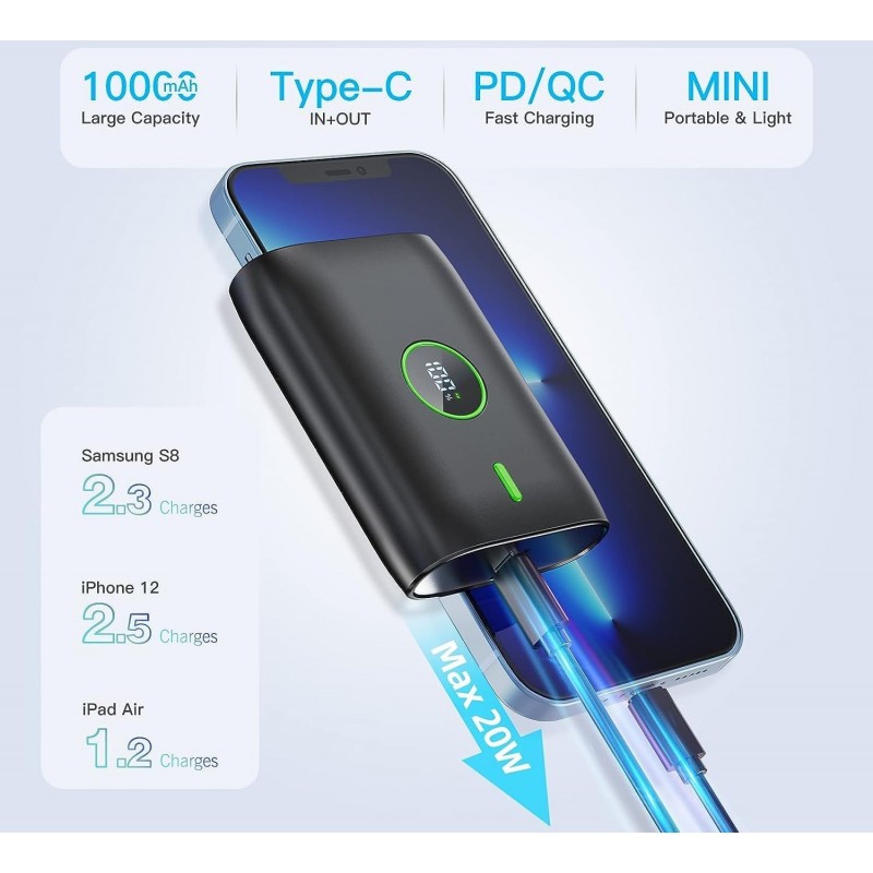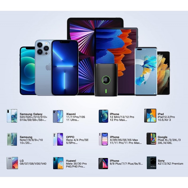 Perfeito para quem necessita de uma fonte de energia confiável e rápida em movimento, este power bank é uma escolha ideal para todos os dispositivos móveis, incluindo smartphones, tablets, auriculares Bluetooth, rastreadores de atividade física, smartwatches, e mais.