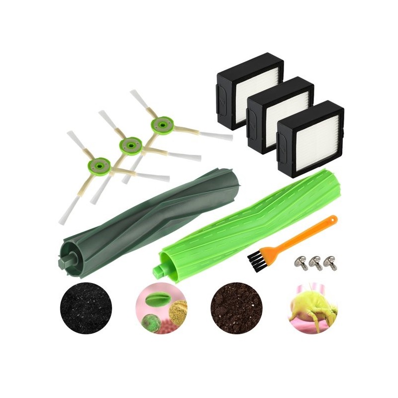 Kits De Peças De Reposição Para Aspirador De Pó Roomba E5 E6 E7 i7 i7+/i7 Plus com 3 filtros Hepa + 1 conjunto de escovas de borracha multi - superfície + 3 escovas laterais + 1 escova de limpeza grátis