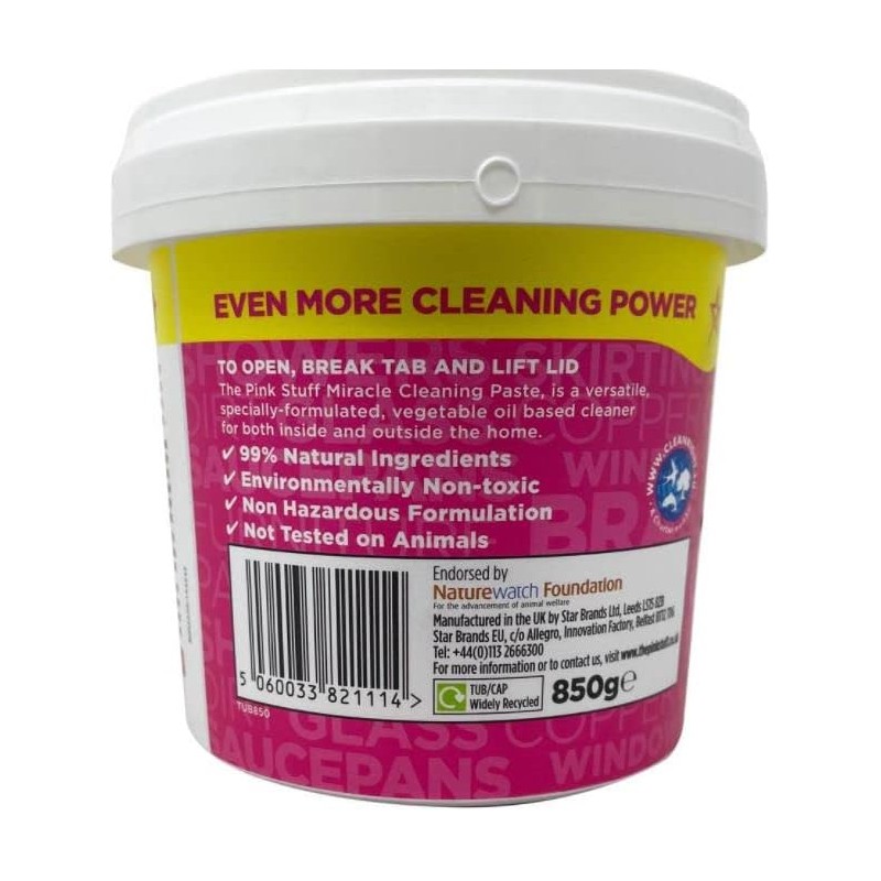 A Pasta de Limpeza The Pink Stuff é um produto de limpeza multiusos essencial para qualquer lar. Com 850g, esta pasta robusta é formulada para lidar com as tarefas de limpeza mais desafiadoras, proporcionando resultados impecáveis em diversas superfícies, especialmente em metal.