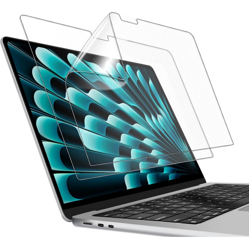 Protetor de ecrã para MacBook Air de 13,6 polegadas, compatível com os modelos 2024 e 2022 (M3/M2). Anti-reflexos, anti-impressões digitais e fabricado em PET de alta qualidade.