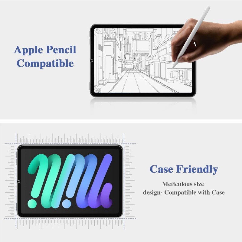 Proteja o ecrã do seu iPad Mini 7 (2024) e iPad Mini 6 (2021) de 8,3 polegadas com este pack de 2 protetores de vidro temperado de alta qualidade. Projetados para oferecer proteção avançada, estes protetores garantem resistência, clareza e uma experiência de toque natural.