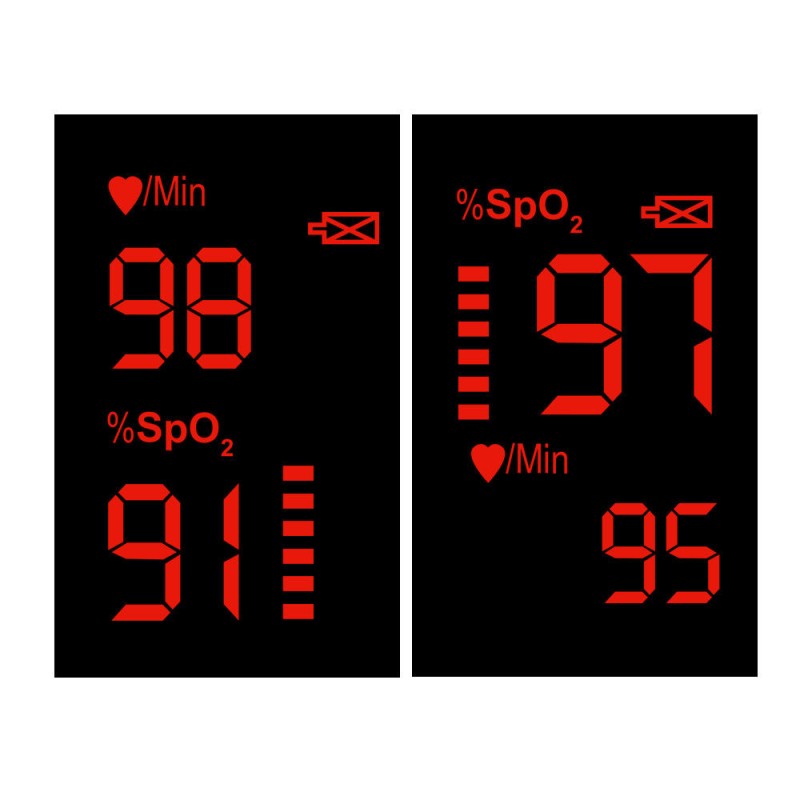 Oxímetro de Dedo Simples, pequeno e muito leve e muito fácil de transportar. Com desligar automático, indicador do nível da bateria com alarme da bateria fraca e ecrã Led. Quando o nível de carga da bateria é tão baixo ao ponto de prejudicar o normal funcionamento do oxímetro, aparece um sinal no ecrã. O dispositivo desliga-se automaticamente quando não recebe sinais por mais de 8 segundos.