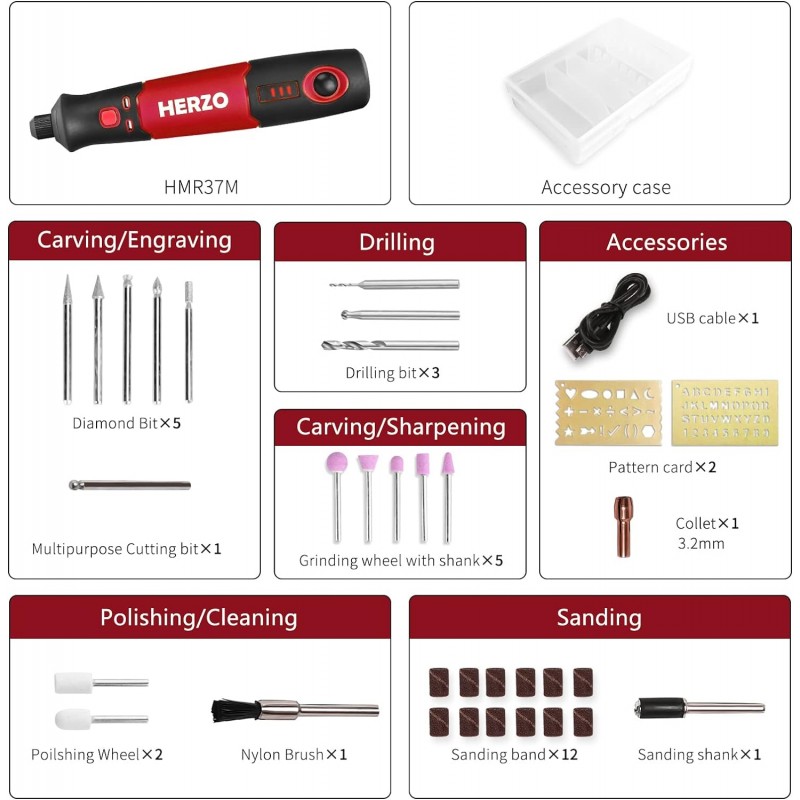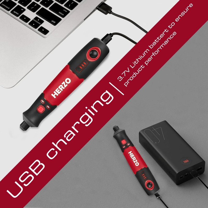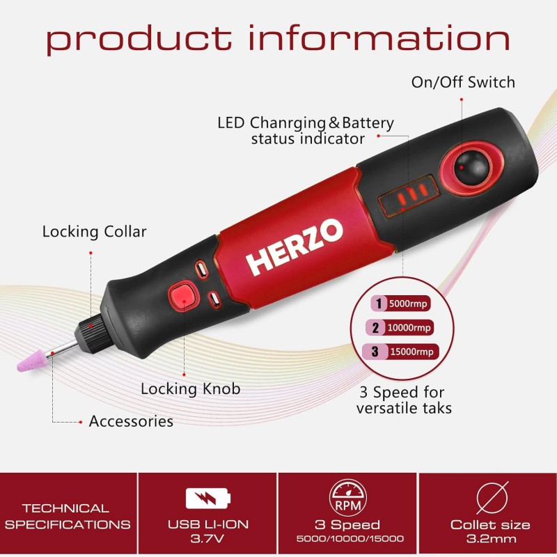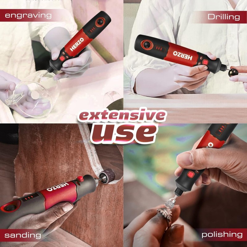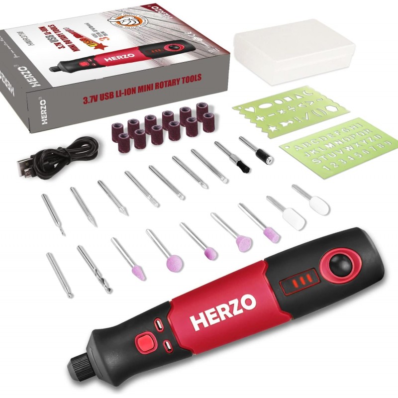 Ferramenta rotativa sem fios de 3,7V, ideal para bricolage, com 32 acessórios, 3 velocidades variáveis e recarregável via USB. Compacta, potente e fácil de usar.