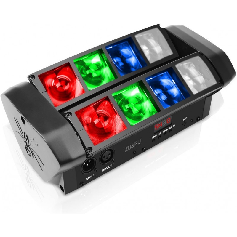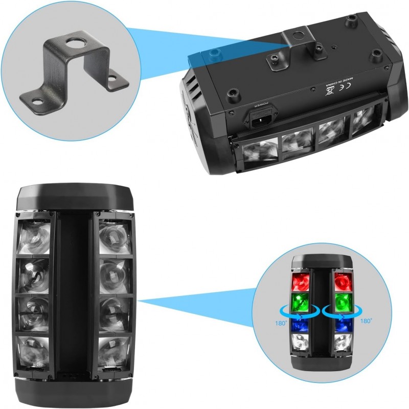 Cabeça de Luz Móvel para DJ Spider com 8 LEDs RGBW, Controlo DMX-512 e Som Activado - Ideal para Festas, Eventos e Concertos [Classe Energética A++]