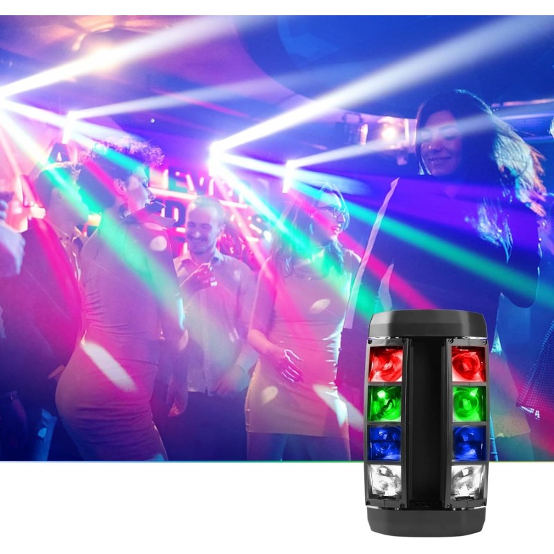 Fonte de Luz Potente: Com 8 LEDs RGBW de 3W, desfrute de cores vibrantes e de alto brilho que cativam o público.