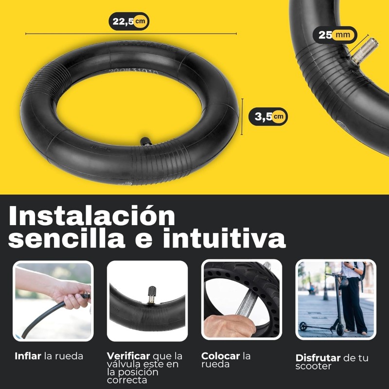Este produto inclui duas câmaras de ar reforçadas, ideais para substituir as câmaras antigas do seu skate elétrico ou trotinete. Fabricadas com materiais de excelência, estas câmaras garantem alta durabilidade e desempenho.