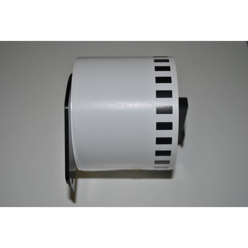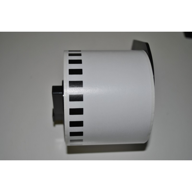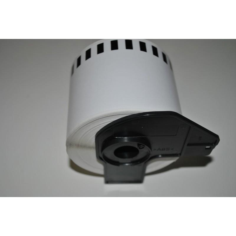 Fita de papel contínuo, em papel térmico, para impressoras de etiquetas Brother QL, permitindo ajustar o comprimento das etiquetas a cada utilização.