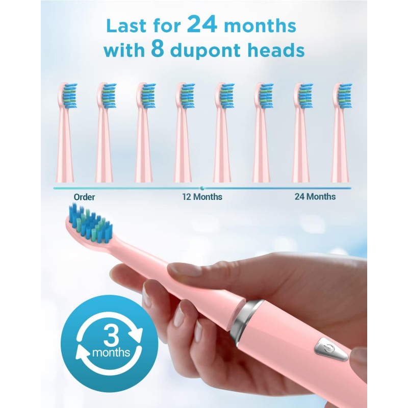 Escova de dentes elétrica sónica recarregável, ideal para adultos e crianças a partir dos 8 anos, com 8 cabeças, 5 modos de limpeza e certificação IPX7.