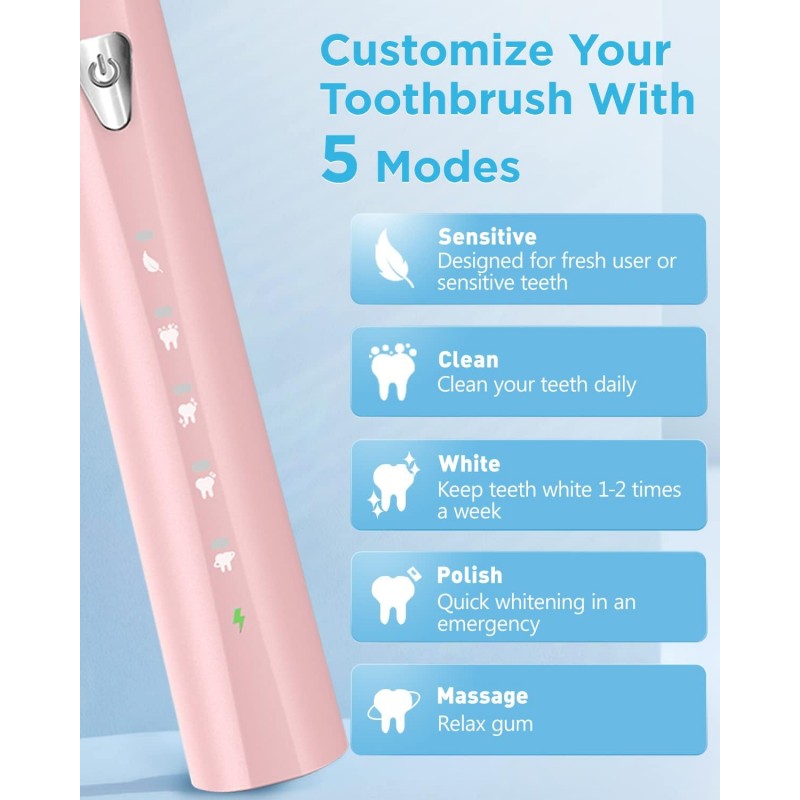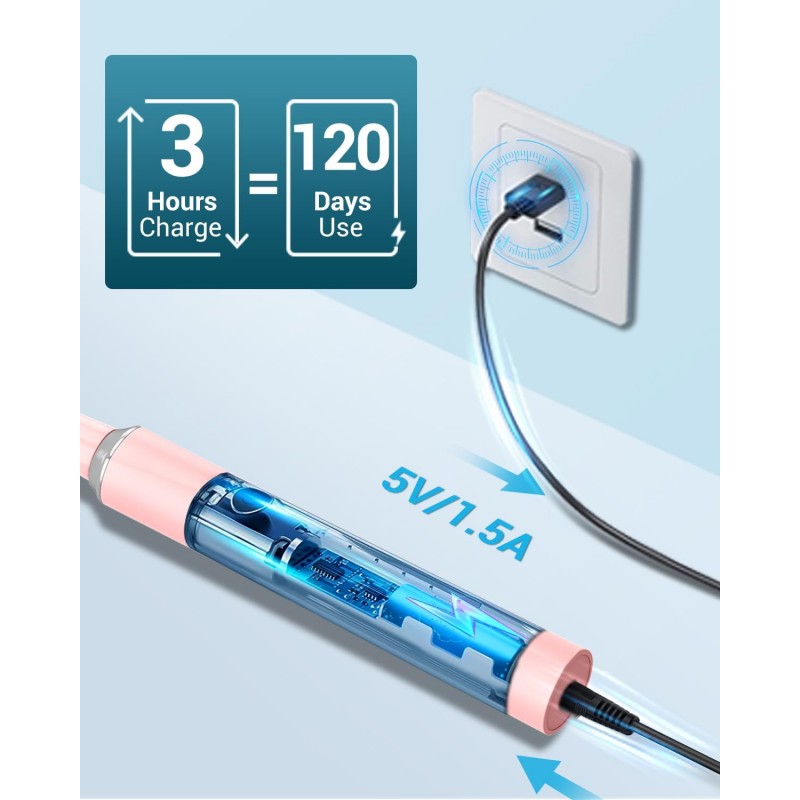 A escova de dentes elétrica sónica é perfeita para uma limpeza oral profunda e personalizada, ideal para adultos e crianças com gengivas sensíveis. Com um motor ultrassónico de 40.000 vibrações por minuto, proporciona uma experiência de limpeza eficaz, eliminando até 10 vezes mais placa do que uma escova manual.