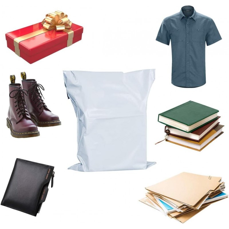 Os Sacos de Encomendas são fabricados em polietileno branco com forro interno preto, proporcionando uma proteção opaca e resistente para o envio dos seus produtos. Estes sacos são ideais para o transporte seguro de artigos como roupas, acessórios, livros e outros produtos leves e não frágeis.