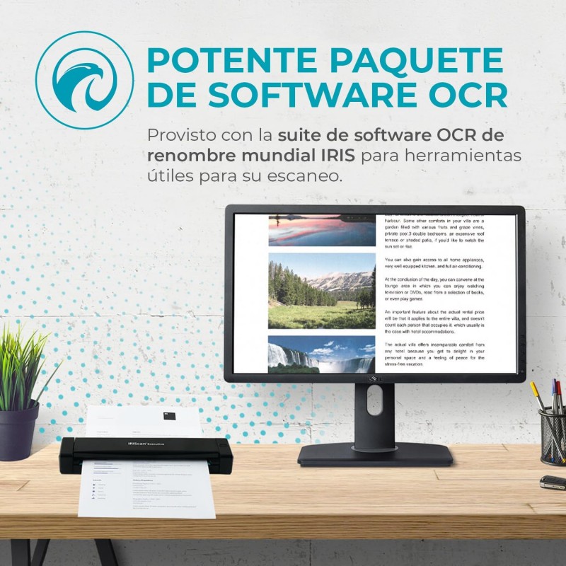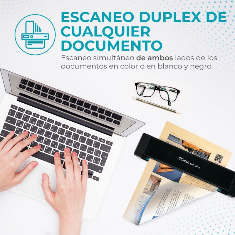 Maximize a eficiência do seu escritório com o IRIScan Executive 4 v4PRO, um scanner portátil A4 duplex que combina alta velocidade com software avançado de gestão de PDF, ideal para profissionais em movimento.