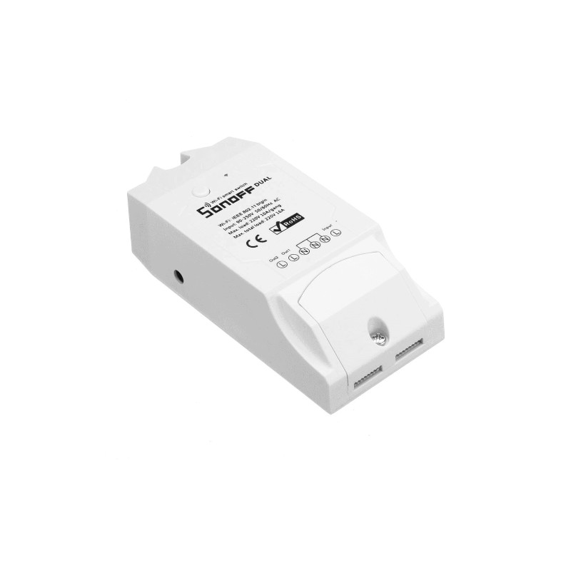 Sonoff Interruptor DUALR2 - Interruptor Duplo Smart WiFi Wireless Smart Conveniente para automatizar os seus eletrodomésticos com o aplicativo eWeLink através do seu Smartphone ou Tablet ou seu Comando de Voz. Você pode controlar 2 dispositivos conectados ao switch de forma independente, para que não haja necessidade de comprar switches extras, economizando mais dinheiro.