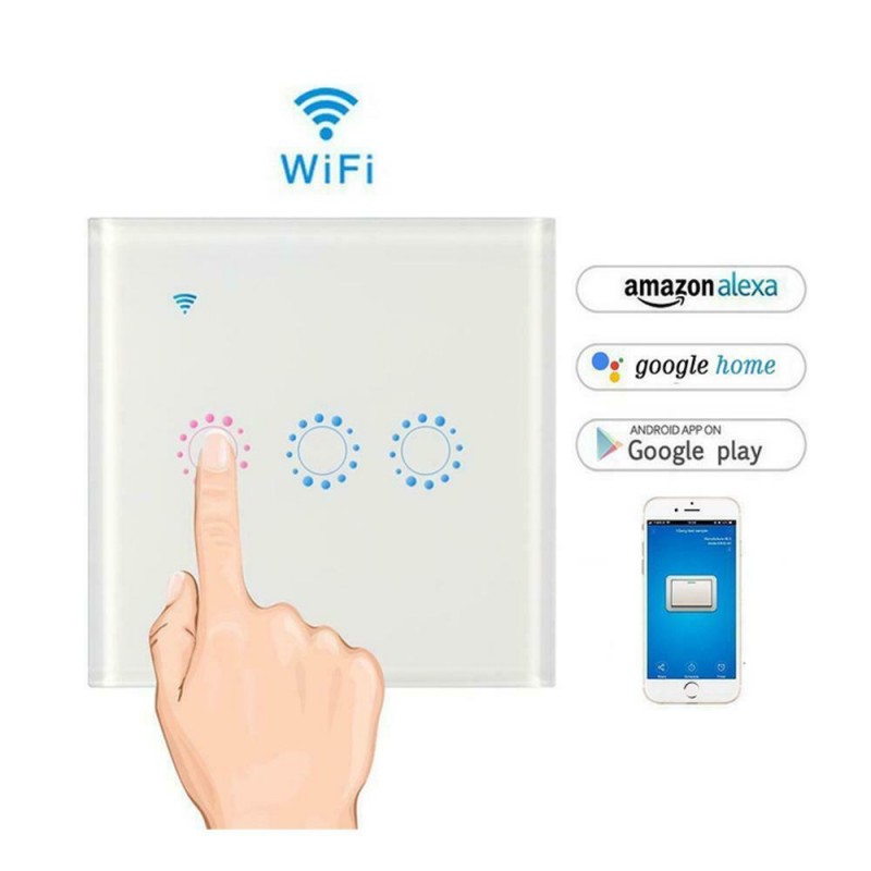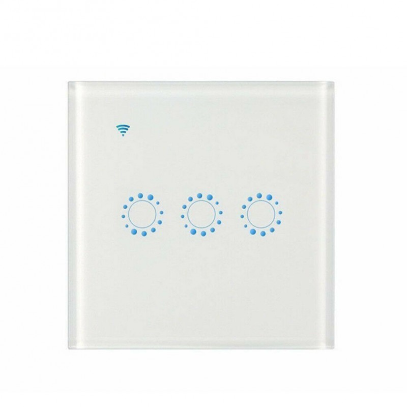 Interruptor Digital - Triplo - Controlo à distância Conveniente para automatizar a sua iluminação de casa ou escritório com o aplicativo eWeLink através do seu Smartphone ou Tablet ou seu Comando de Voz. Com painel frontal de vidro temperado polido e acabamentos perfeitos. Tem compatibilidade absoluta com Amazon Alexa, Google Assistant, Google Nest.