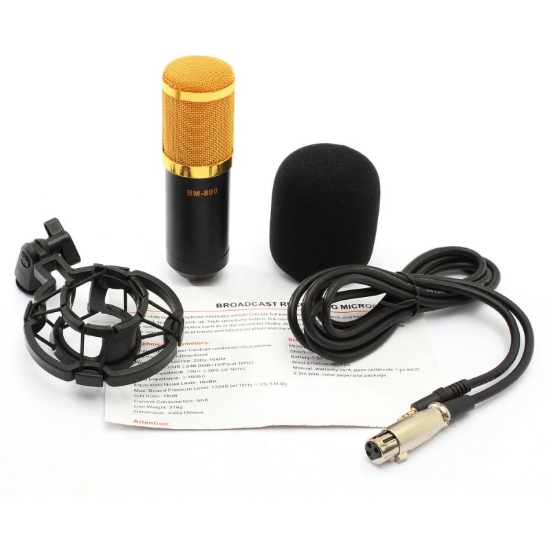 O microfone possui uma rede de prevenção de explosões e um algodão à prova de vento para garantir que o som seja captado de forma clara e sem interferências externas. Além disso, a embalagem inclui um cabo de áudio e um manual de instruções para que você possa começar a usar o seu microfone BM-800 imediatamente.