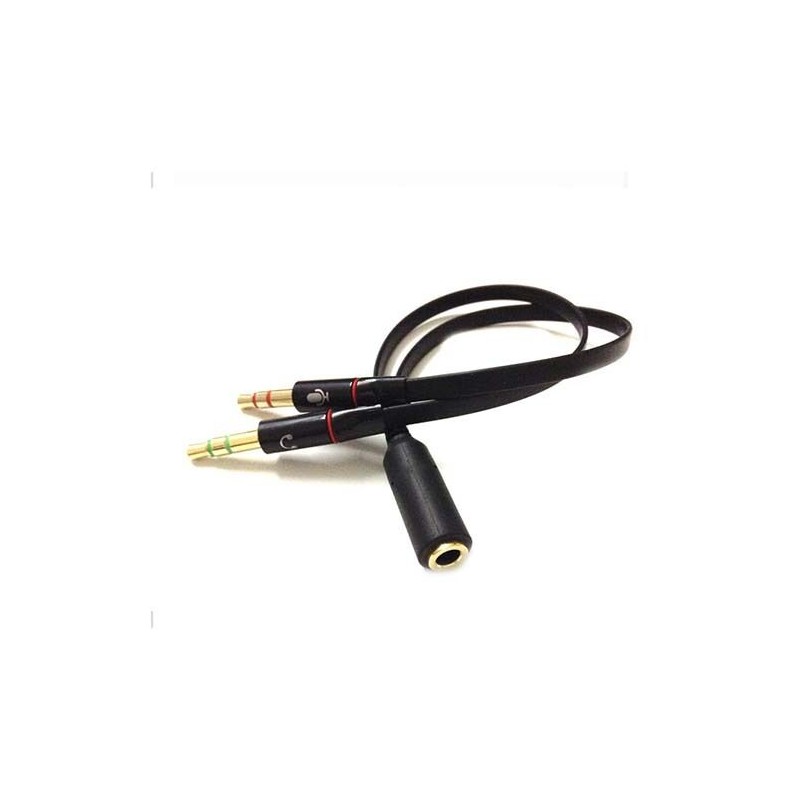 Duas portas masculinas: uma para fone de ouvido em seu PC / laptop, a outra para microfone em seu PC / laptop.