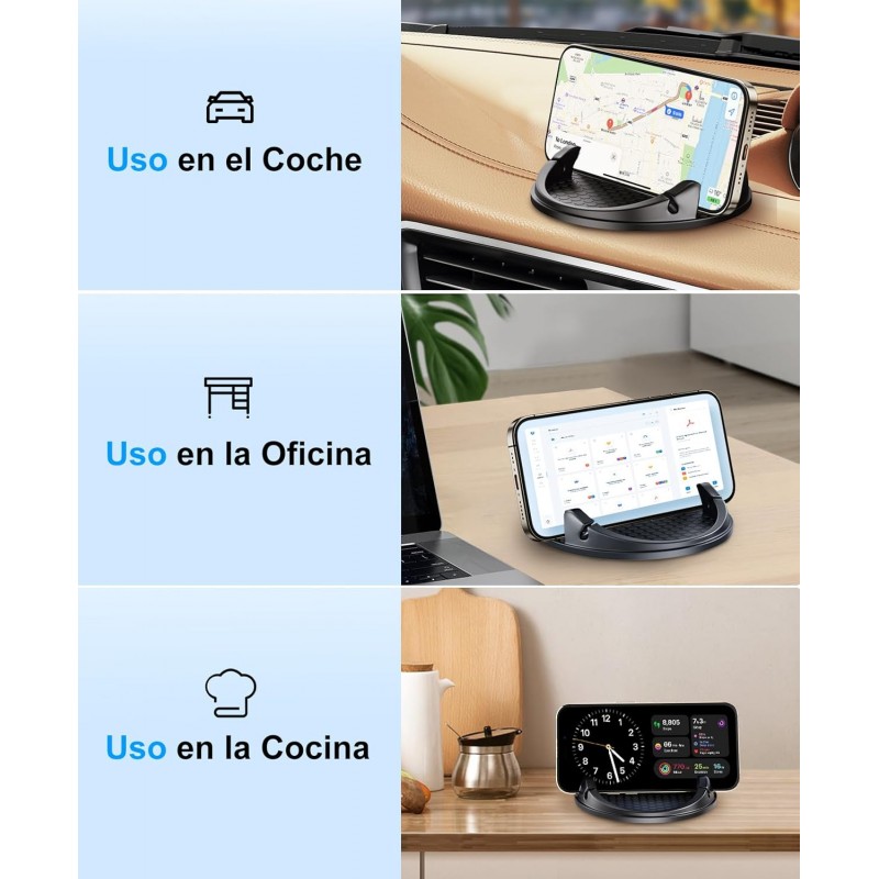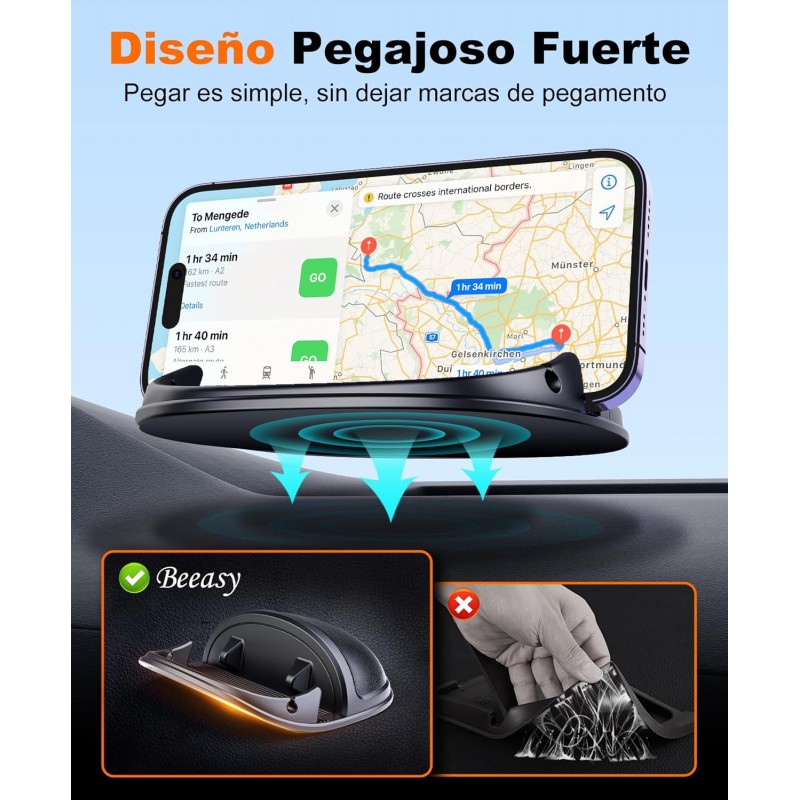 Suporte de telemóvel para carro, antiderrapante e feito de silicone premium. Compatível com todos os telemóveis de 3 a 7 polegadas e projetado para vários modelos de carros. Inclui espaço para cabos e armazenamento de pequenos itens.