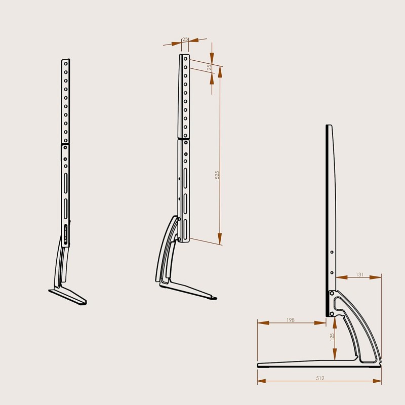 Este suporte para televisão oferece uma inclinação ajustável de +/-5 graus e uma altura ajustável entre 525 - 696 mm.