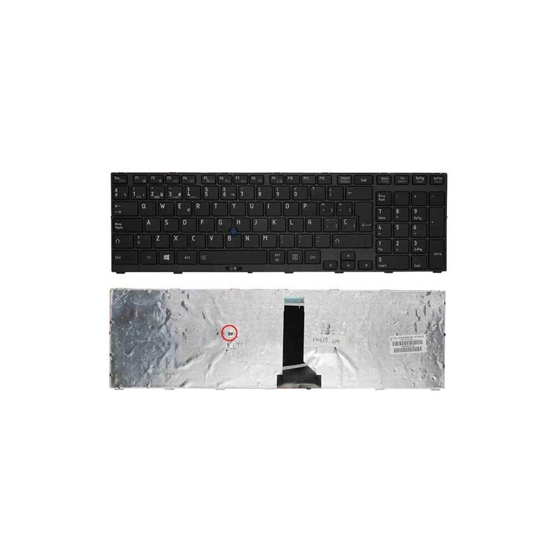 Teclado portátil preto compatível com Toshiba Tecra R850 e R850 Series, com PointStick, em layout espanhol/castelhano. Produto sem moldura.