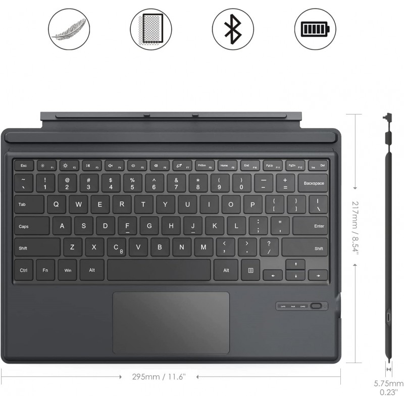 Compatível com Surface Pro 7 Plus /Pro 7 / Pro 6 / Pro 5 (Pro 2017 model 1796 ) / Pro 4 / Pro 3, este teclado oferece uma experiência de escrita familiar e eficiente.