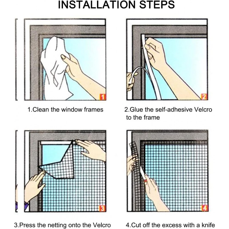 Fácil de Instalar: As redes mosquiteiras de janelas auto-adesivas de bricolage podem ser instaladas em apenas 10 minutos, economizando tempo e dinheiro. Não é necessário fazer orifícios, o que evita danos nas molduras das janelas ou paredes.