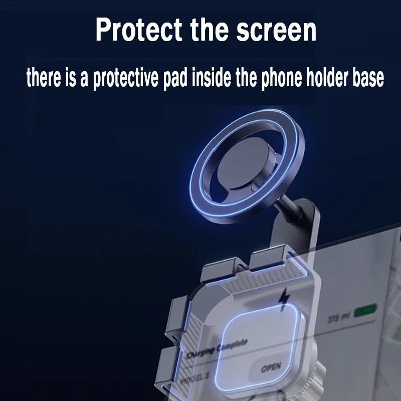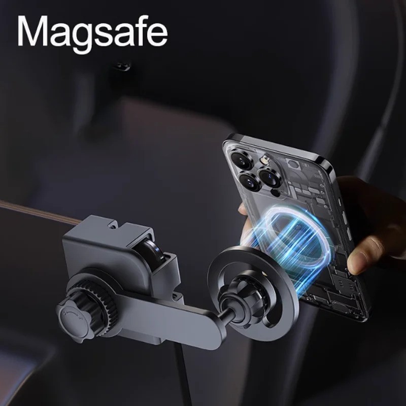 Suporte magnético MagSafe compatível com ecrãs de carro até 1.5 cm de espessura. Ideal para Tesla Model 3, Y, X, S e modelos BYD Atto3, Dolphin, Seal e Han.