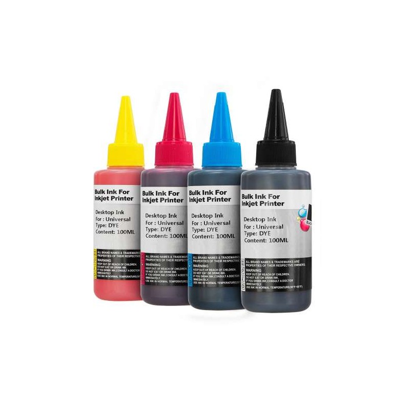Kit de recarga de tintas para tinteiros de impressoras 1 x Preto - 100ml 1 x magenta - 100ml 1 x amarelo - 100ml 1x azul - 100ml