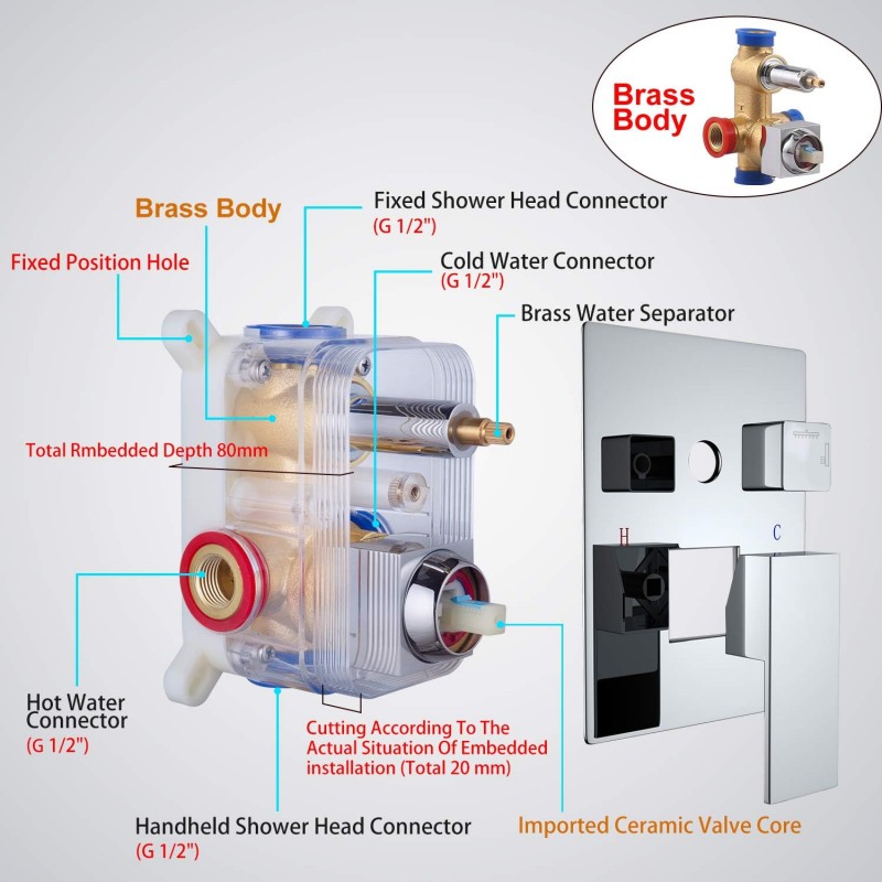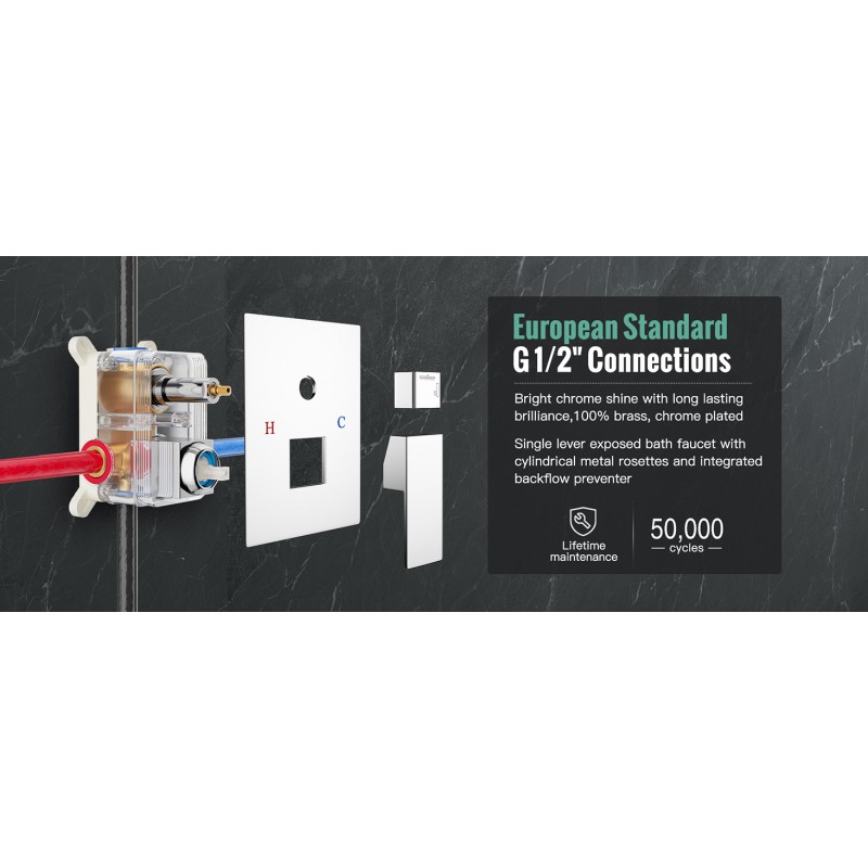 Instalação Versátil e Simples: Com o padrão de rosca G 1/2", o sistema adapta-se facilmente a diversas configurações de casa de banho, permitindo-lhe instalar os chuveiros de acordo com as suas preferências e necessidades.
