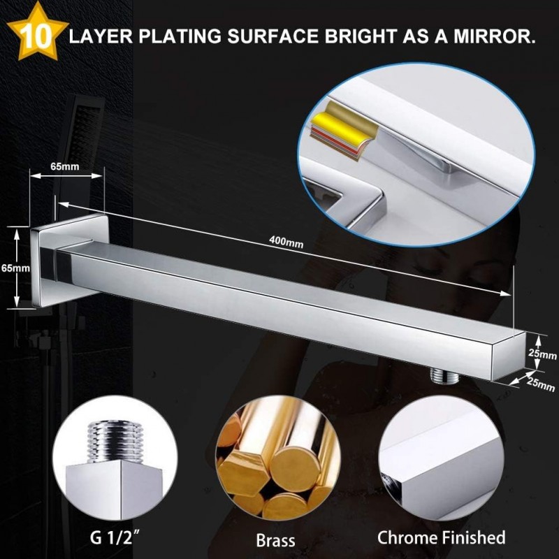 Braço de Chuveiro de 16 polegadas e Mangueira de 1.8M: Elaborados em latão e aço inoxidável 304, respetivamente, asseguram uma excelente amplitude e flexibilidade.