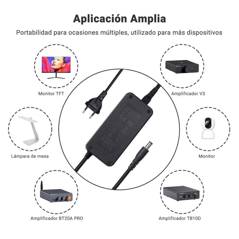 Esta fonte de alimentação de 48 volts e 5 amperes foi desenvolvida para fornecer energia estável e fiável a amplificadores de áudio doméstico. É especialmente indicada para os modelos Fosi Audio BT20A Pro, TB10D e V3, garantindo um desempenho seguro e consistente.