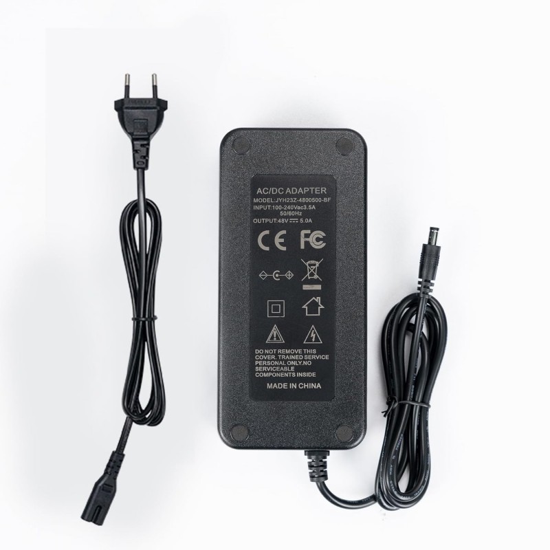 Fonte de alimentação de 48 volts e 5 amperes, adequada para amplificadores Fosi Audio BT20A Pro, TB10D e V3. Fornece energia estável de alta potência e inclui proteção contra sobretensão e sobrecorrente.