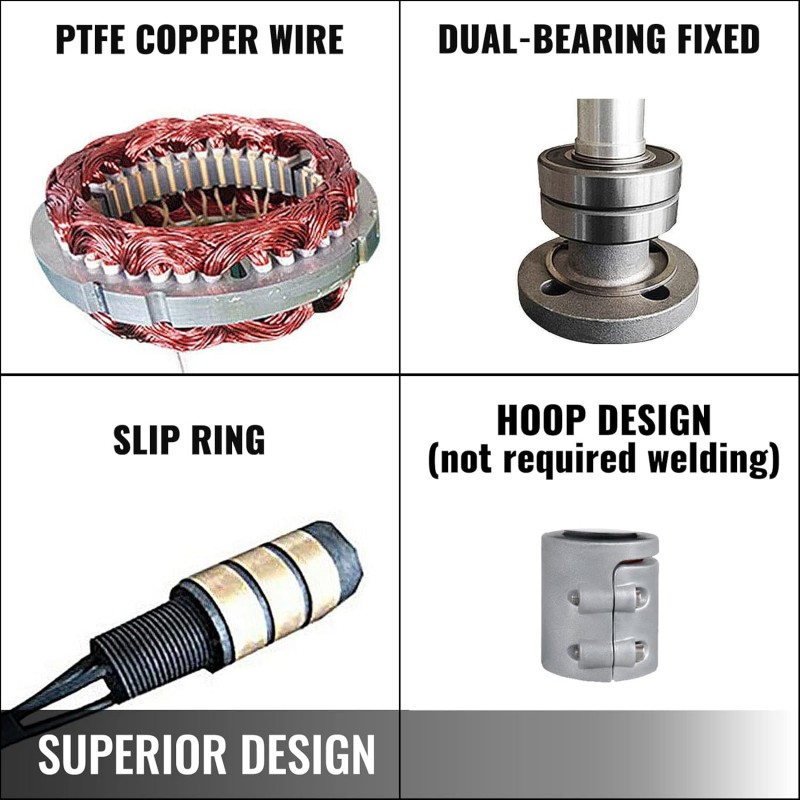 Graças ao seu design compacto com rolamentos duplos, tem baixa vibração, baixo ruído e arranque rápido com velocidade mínima de vento de apenas 2,0 m/s. Possui estrutura em liga de alumínio de alta qualidade, bobinas de cobre e componentes em aço inoxidável, garantindo resistência à corrosão e longa durabilidade, mesmo em ambientes exigentes.