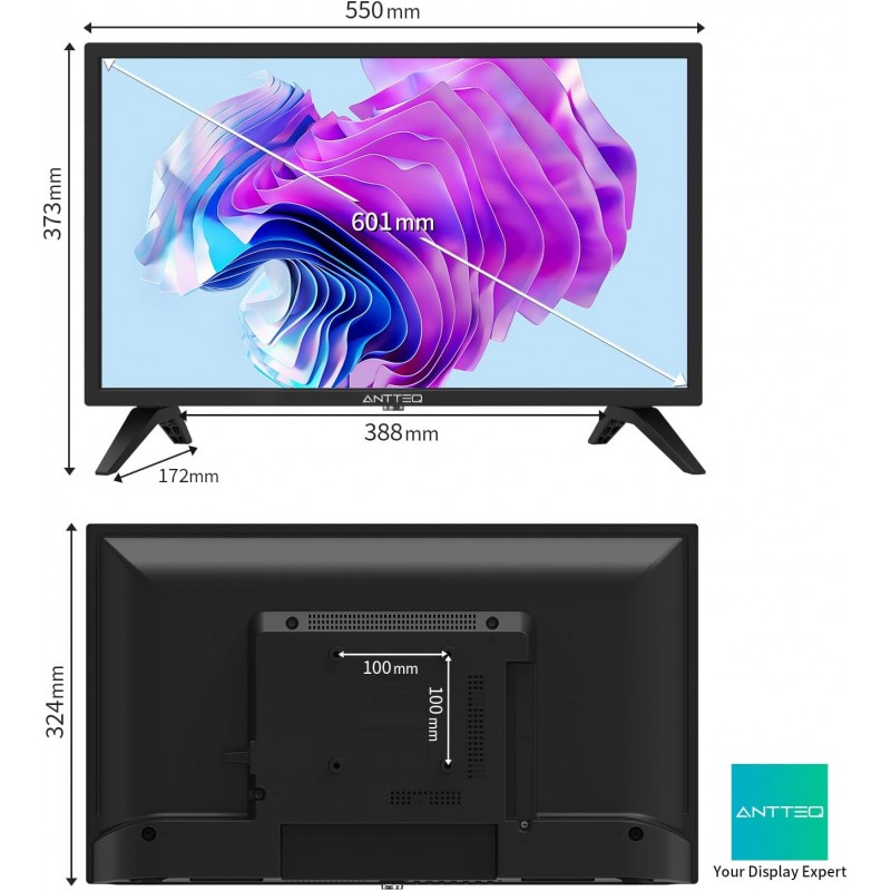 Ecrã Vibrante: Com tecnologia LED e uma resolução de 720p, o Antteq AB24F1D garante imagens nítidas e cores vibrantes.
