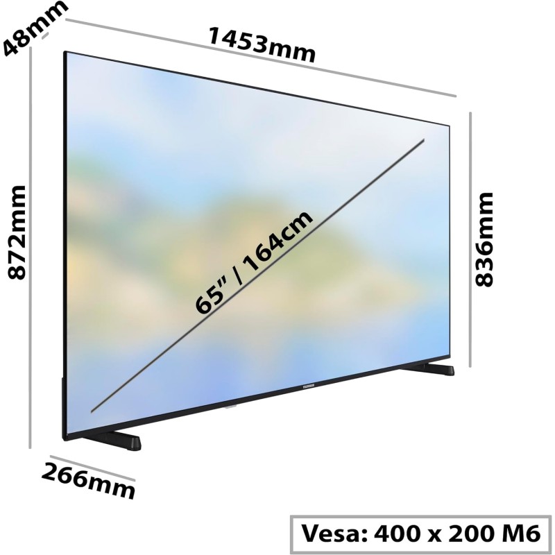 Ecrã de 65 Polegadas: Com uma tela LED de 65 polegadas, esta TV oferece uma experiência de visualização grandiosa e imersiva.
